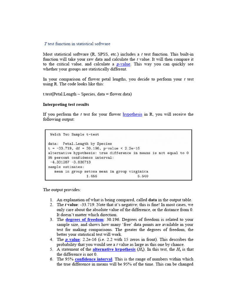 T test function in statistical software