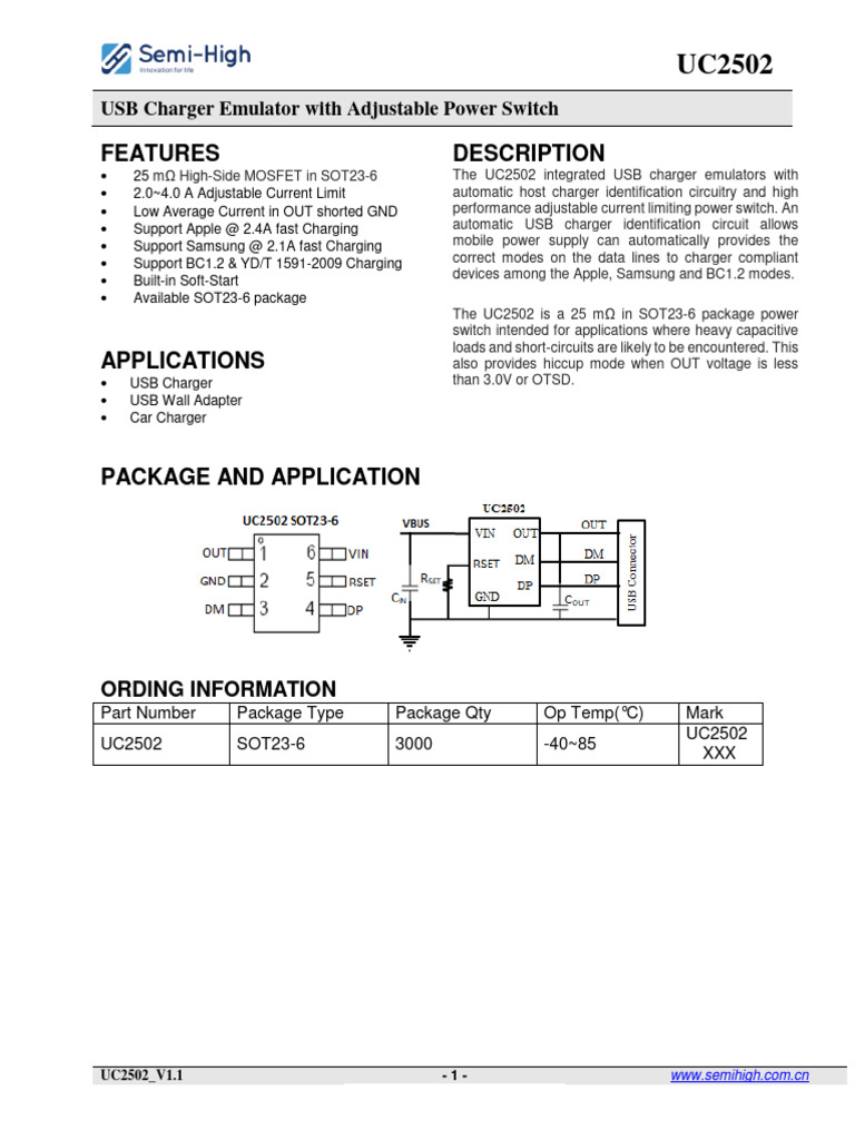 UC2502_V1.1 -1- www.semihigh.com.cn