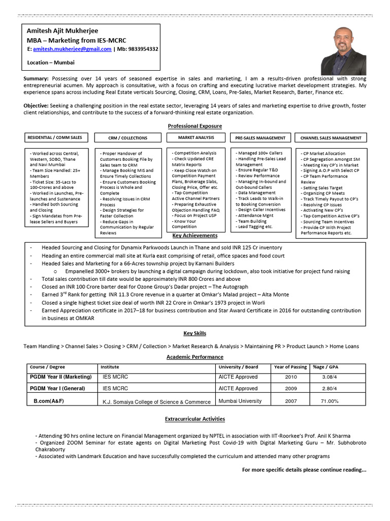 experience spans across including Real Estate verticals Sourcing, Closing, CRM, Loans, Pre-Sales, Market Research, Barter, Finance etc.
