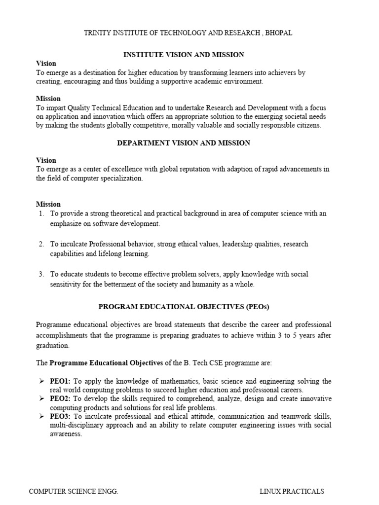 The Programme Educational Objectives of the B. Tech CSE programme are: