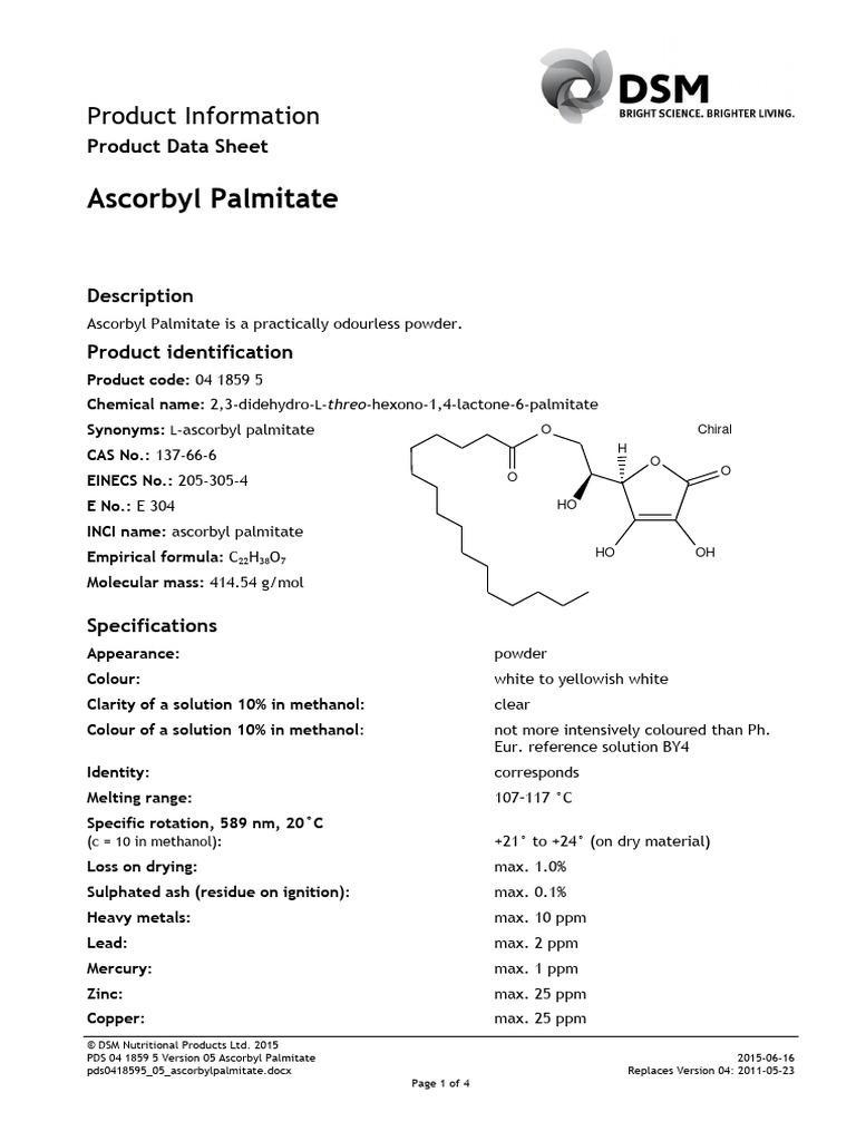 PDS 04 1859 5 Version 05 Ascorbyl Palmitate 2015-06-16