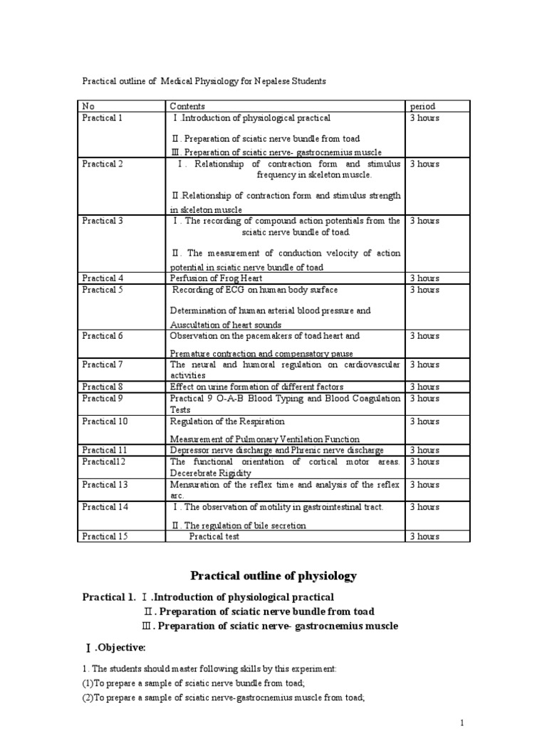 Practical 1 Ⅰ.Introduction of physiological practical 3 hours