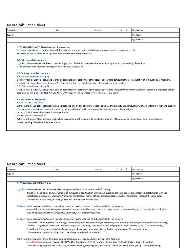 NFPA 13, 2002, CHAP V Classification of Occupancies.