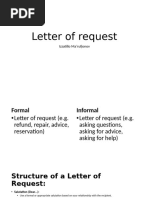 A formal letter of request is written to ask for permission, help, information, advice, etc.