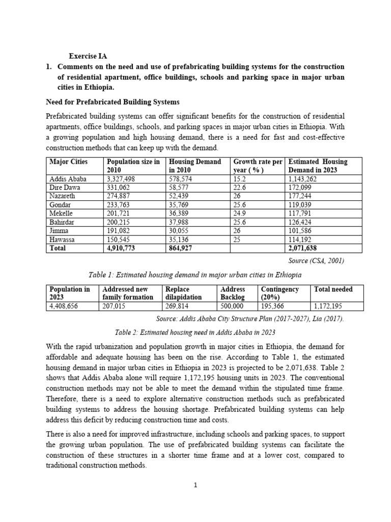 shows that Addis Ababa alone will require 1,172,195 housing units in 2023. The conventional