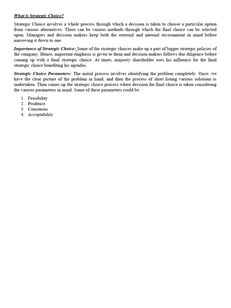 Strategic Choice involves a whole process through which a decision is taken to choose a particular option