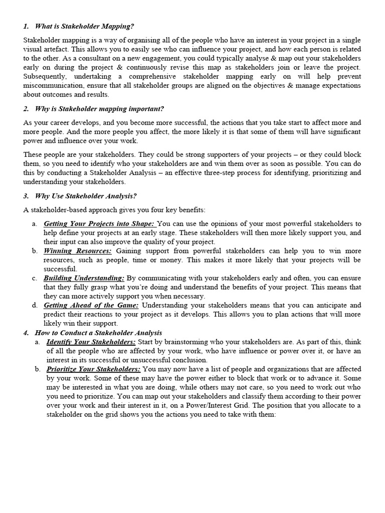 to the other. As a consultant on a new engagement, you could typically analyse & map out your stakeholders