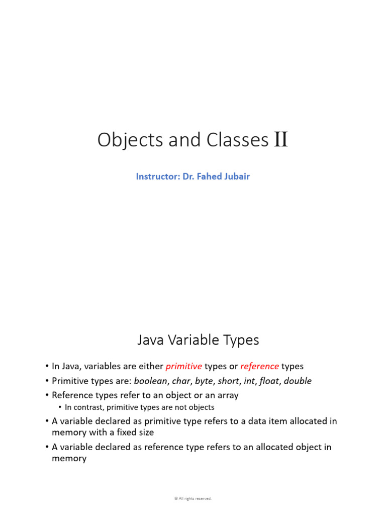 • Primitive types are: boolean, char, byte, short, int, float, double