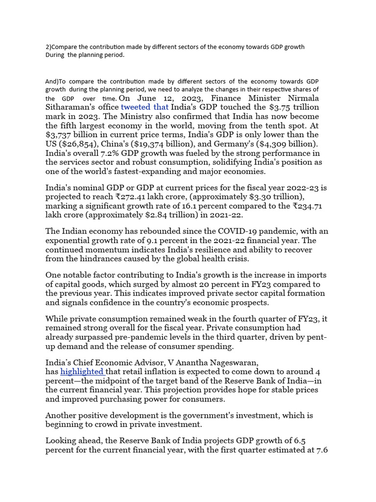 2)Compare the contribution made by different sectors of the economy towards GDP growth