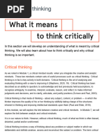 Instructions: Please use the questions under each of the six Critical Thinking elements to