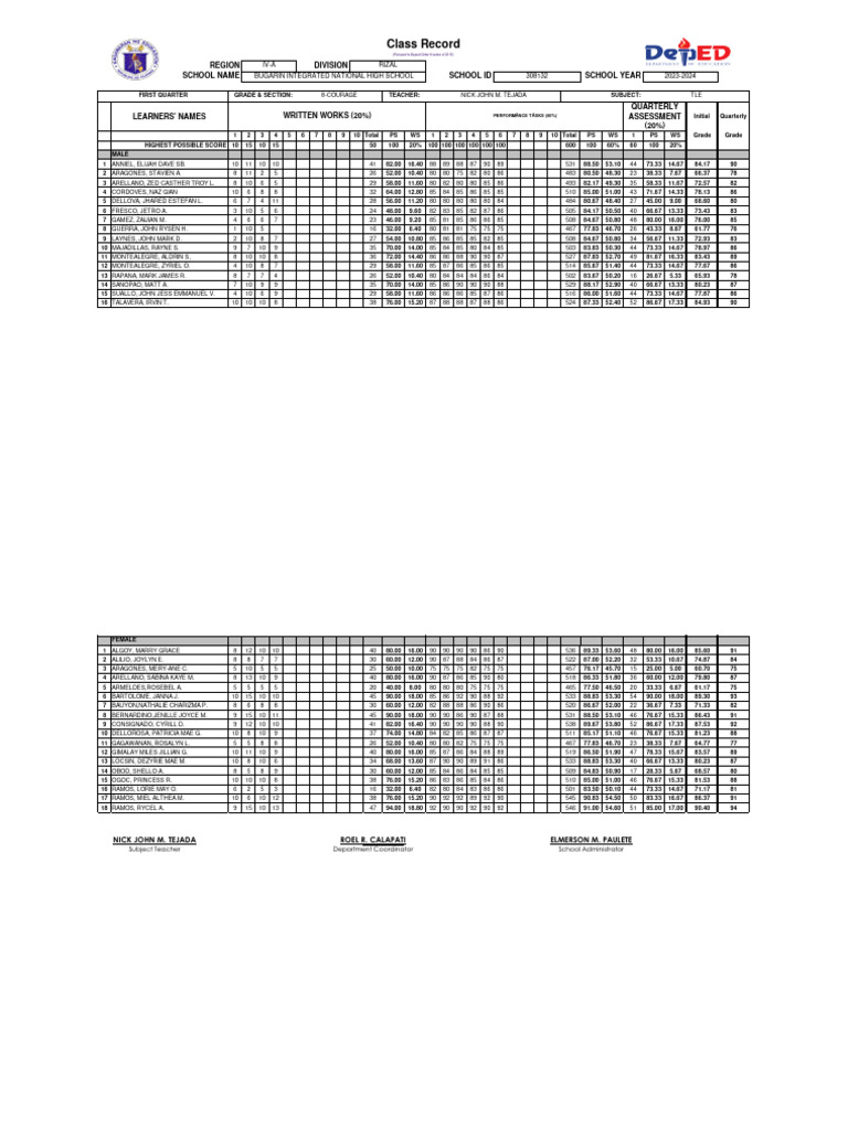 2 ALILIO, JOYLYN E. 8 8 7 7 30 60.00 12.00 90 87 88 84 86 87 522 87.00 52.20 32 53.33 10.67 74.87 84