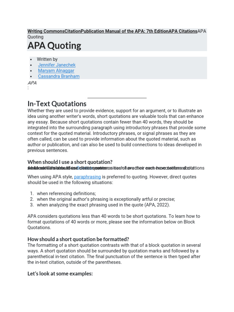 APA Quoting