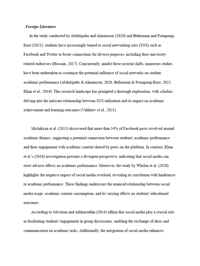 In the study conducted by Yncierto and Soroño-Gagani (2018) titled "The Social Media Use