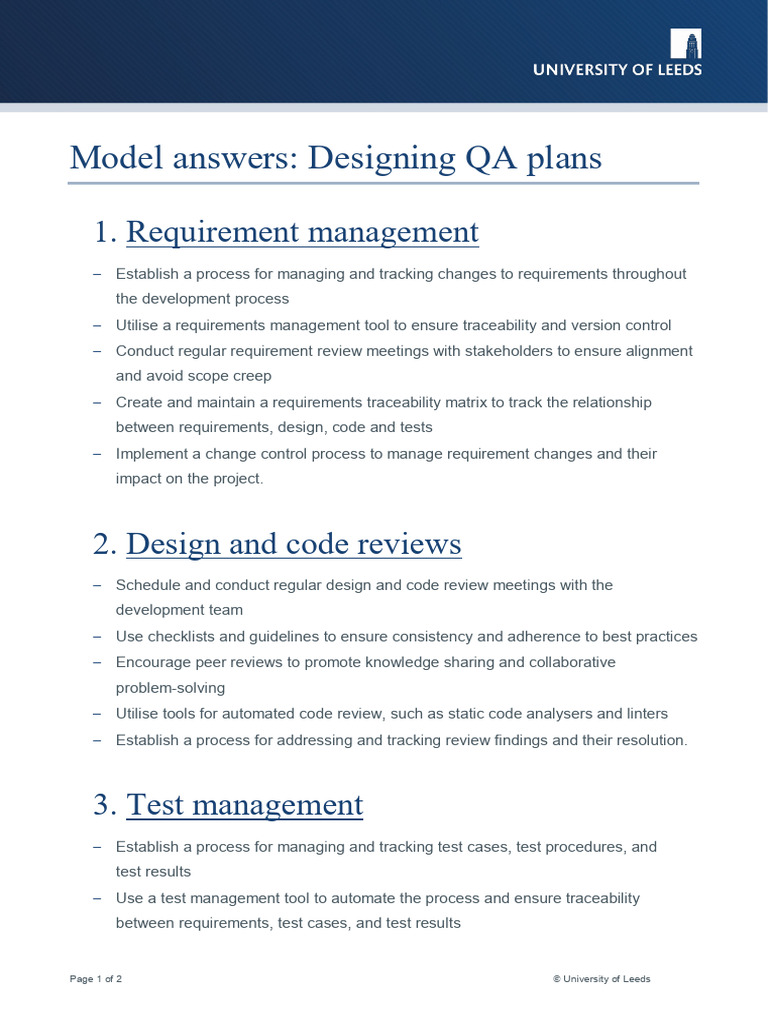 Model answers: Designing QA plans