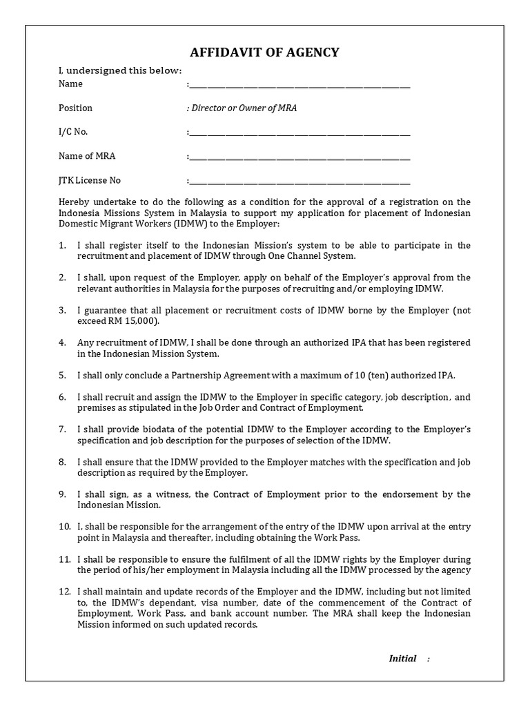13. I shall ensure that all the IDMW who is selected for employment in Malaysia fits to work and