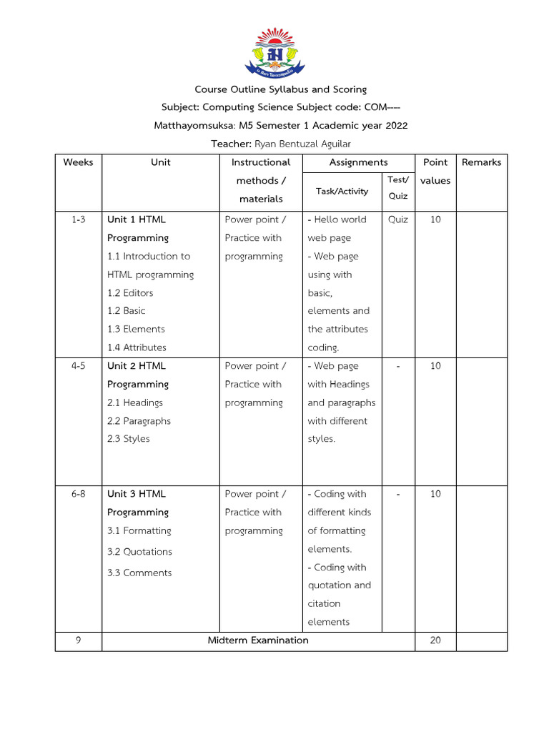 Course Outline Syllabus and Scoring