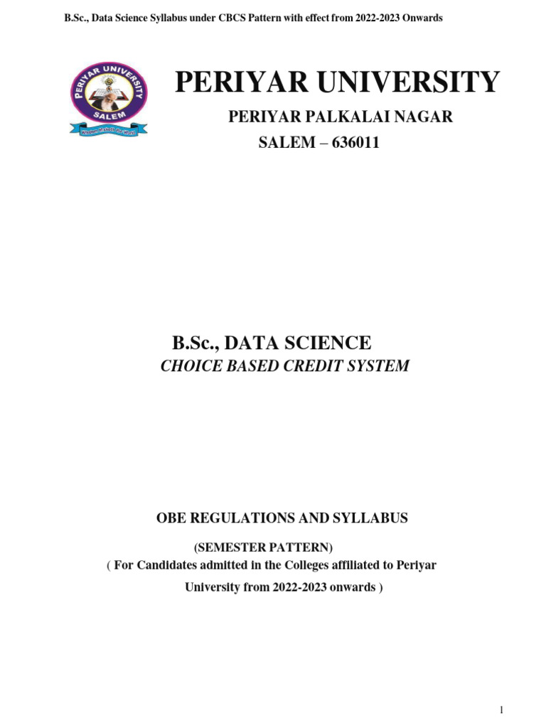 B.Sc., Data Science Syllabus under CBCS Pattern with effect from 2022-2023 Onwards