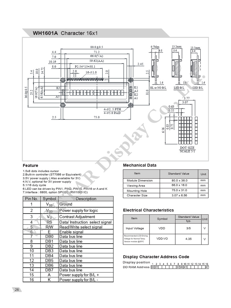 WH1601A Character 16x1