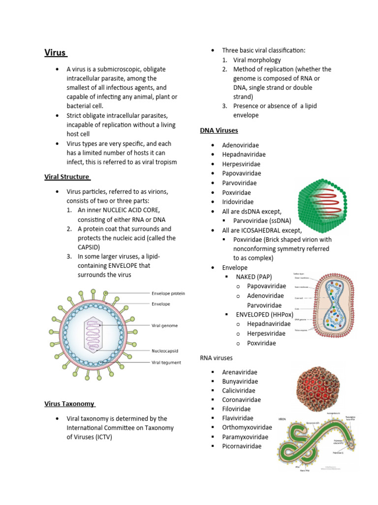 A virus is a submicroscopic, obligate 2. Method of replication (whether the