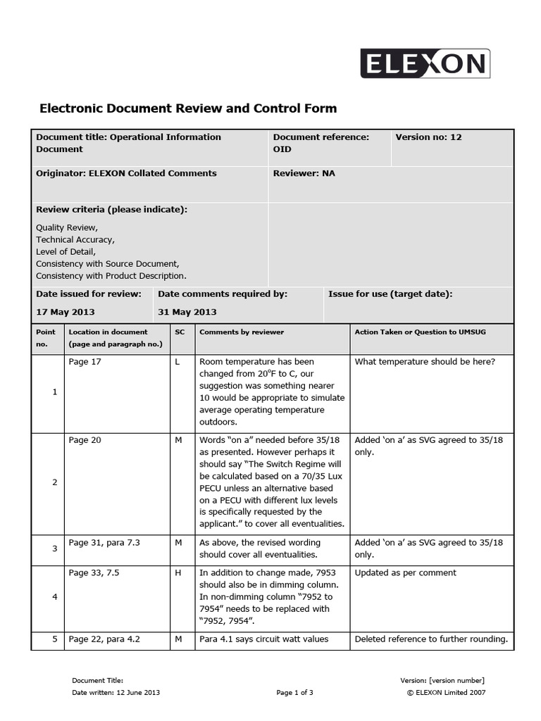 Originator: ELEXON Collated Comments Reviewer: NA