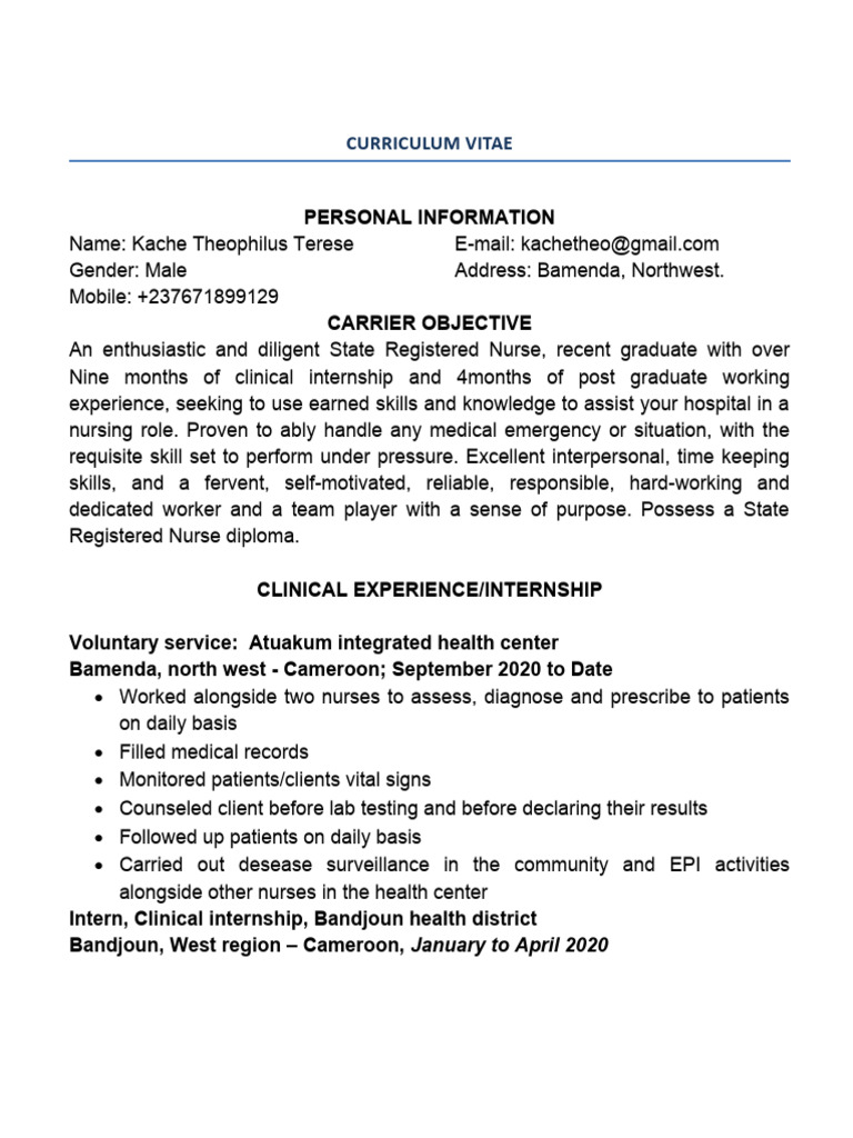 Gender: Male Address: Bamenda, Northwest.