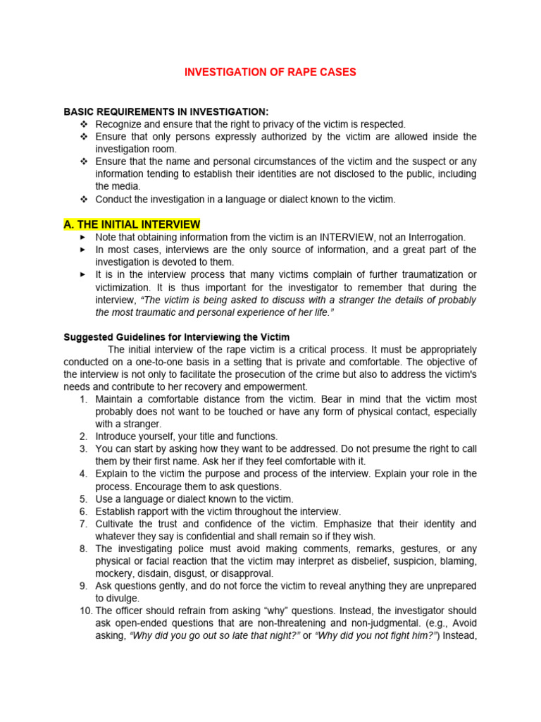 The initial interview of the rape victim is a critical process. It must be appropriately