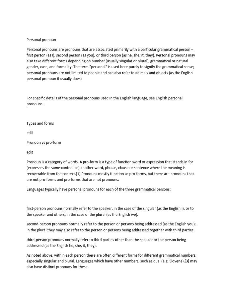 antecedent or referent. This occurs in English with the third-person singular pronouns, where (simply