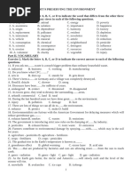 Exercise 1. Mark the letter A, B, C, or D to indicate the word that differs from the other three in position the of the