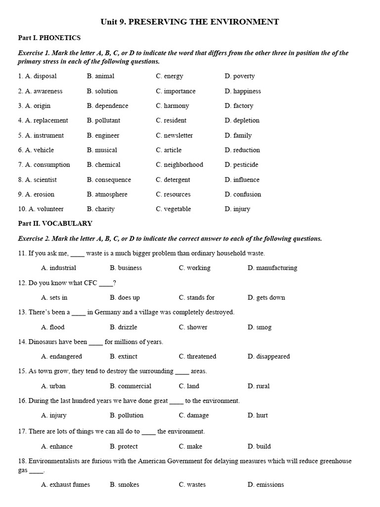 Exercise 9. Read the following passage and mark the letter A, B, C, or D to indicate the correct answer to each of the
