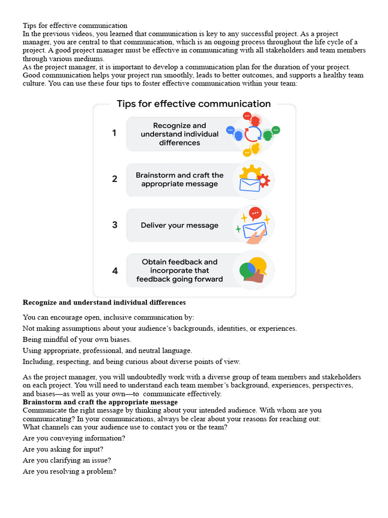 You now have the steps to communicate effectively as a project manager! You have learned how to foster