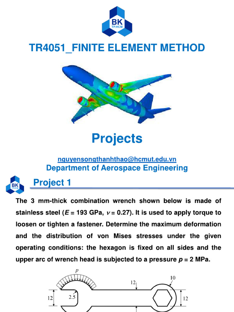 upper arc of wrench head is subjected to a pressure p = 2 MPa.& Project 2