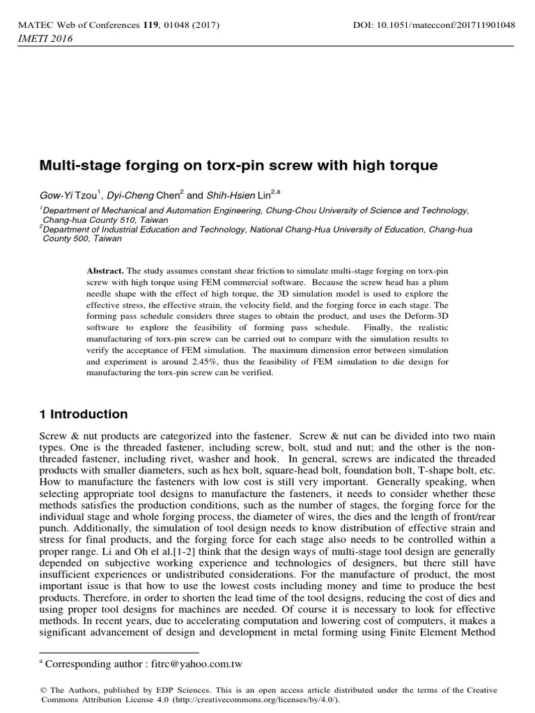 and then improving bolt finished products’ tensile strength. Chang et al. [11] aims at analyzing the