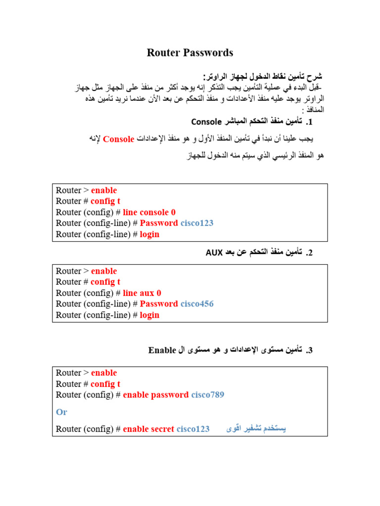 Router (config) # enable secret cisco123 ﯾﺴﺘﺨﺪم ﺗﺸﻔﯿﺮ اﻗﻮى