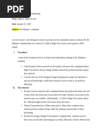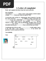 A Letter of Complaint: Read and Complete The Letter From The Words in The List