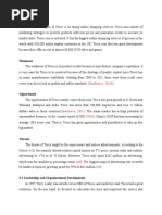 Investment opportunities in countries like Republic of South Africa and Russia. Can take an advantage of the current recession by decreasing the profit to volume ratio. Threats: