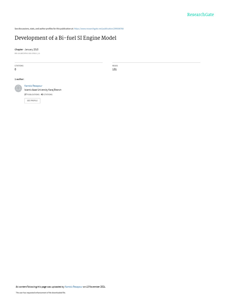 23. Rezapour K, Ebrahimi MK, Wood AS, Nikranjbar A (2010) Simulation and modelling Bi fuel