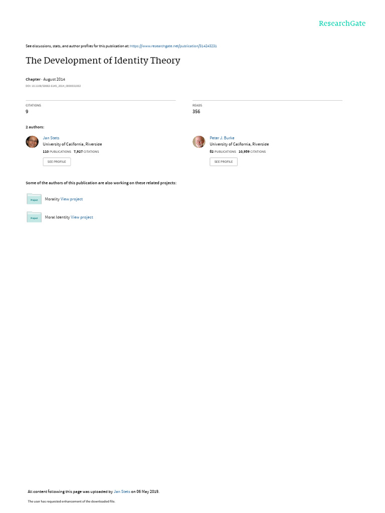 All content following this page was uploaded by Jan Stets on 06 May 2019.