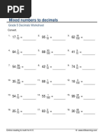 Grade 5 Decimals Worksheet