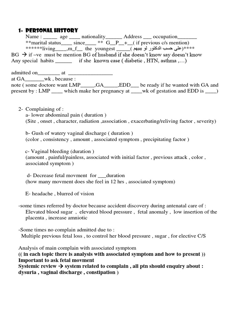 And analysis the complain with associated symptom ( as antenatal H/O)