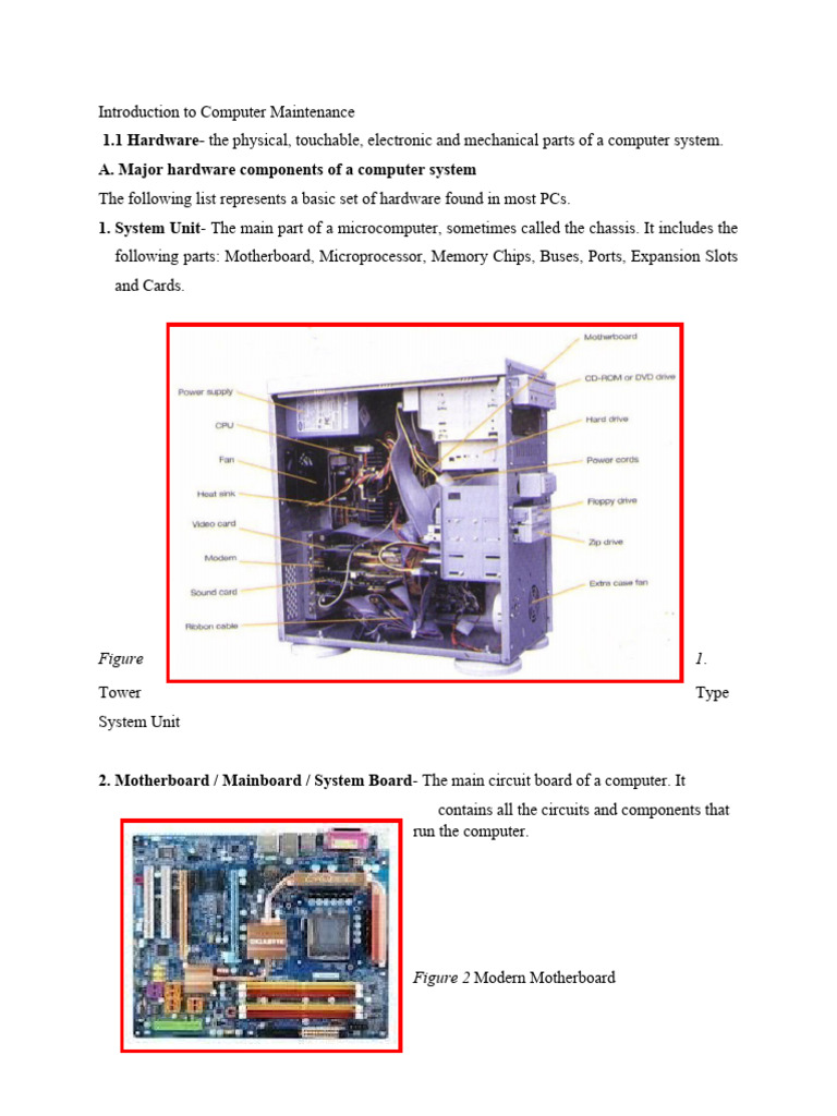 1. System Unit- The main part of a microcomputer, sometimes called the chassis. It includes the