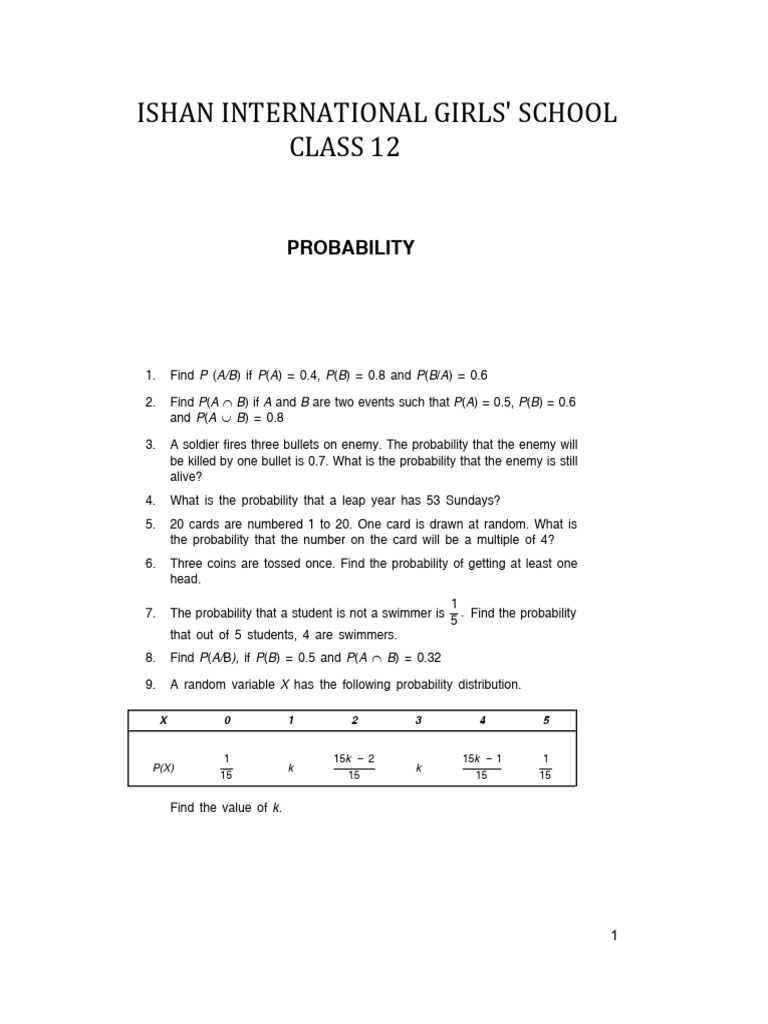 2. Find P(A B) if A and B are two events such that P(A) = 0.5, P(B) = 0.6