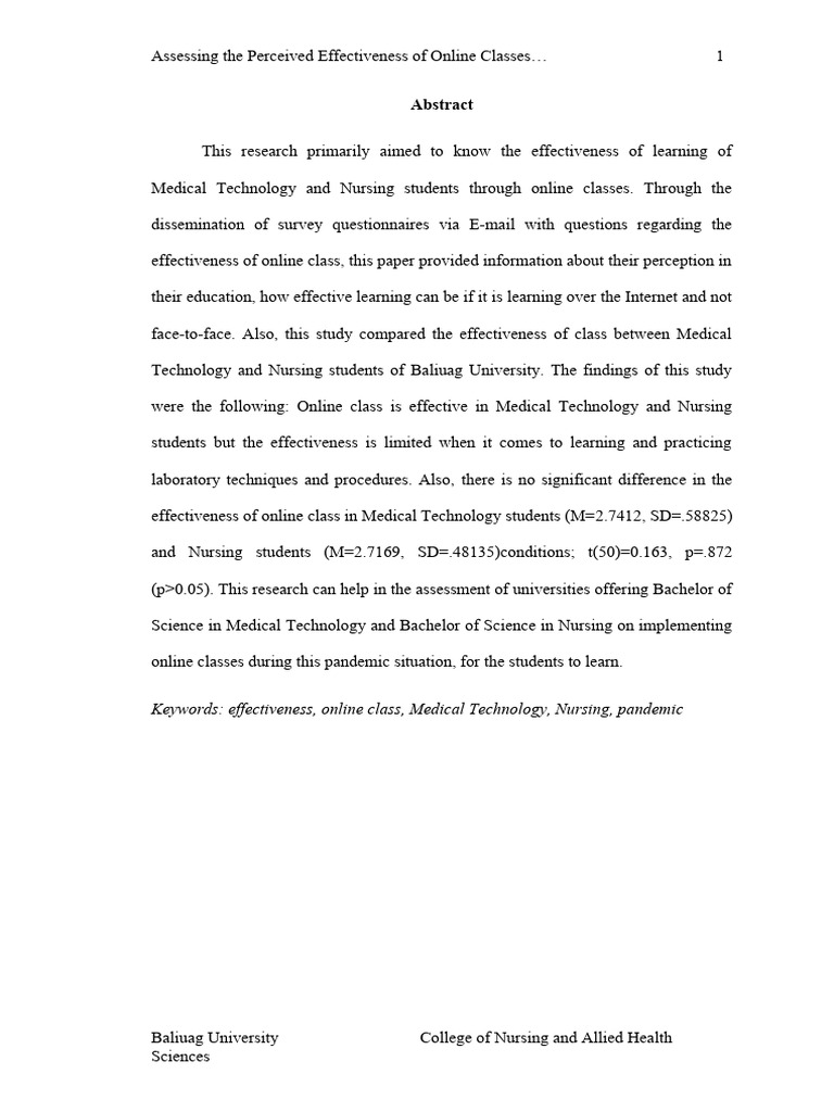 were the following: Online class is effective in Medical Technology and Nursing