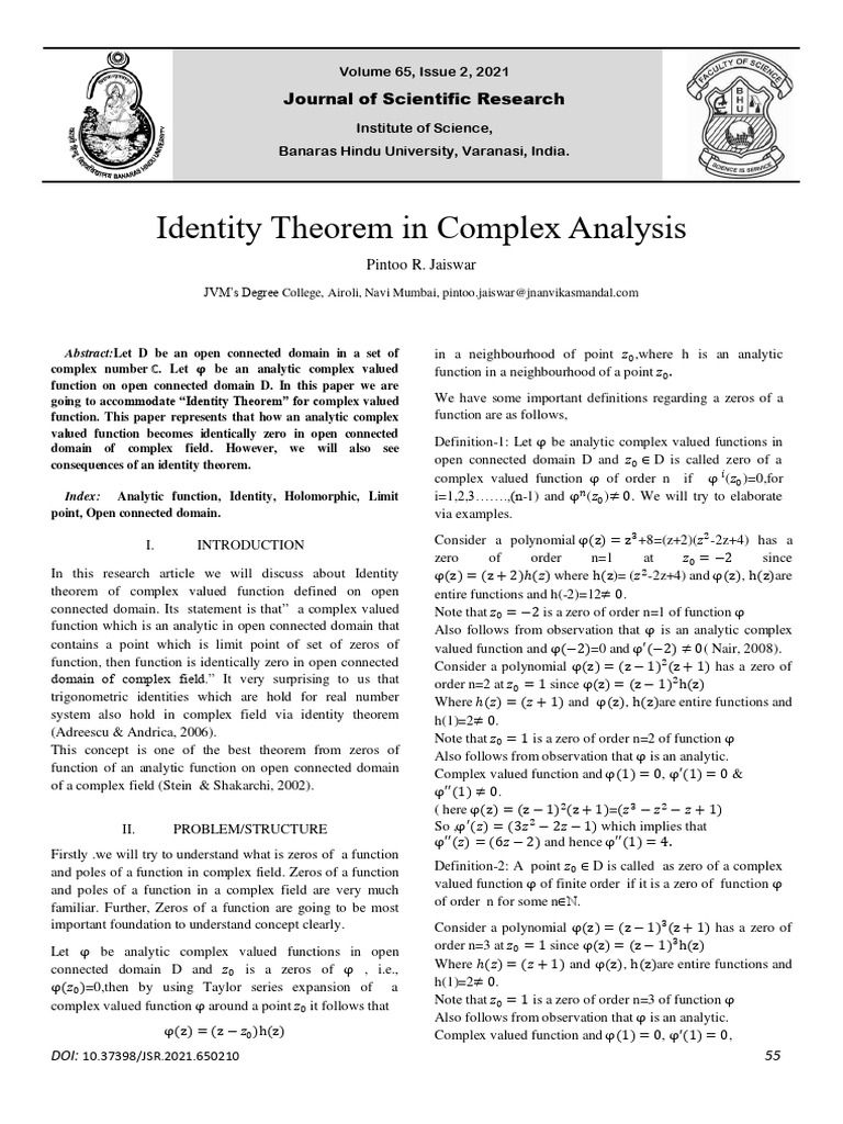 Journal of Scientific Research, Volume 65, Issue 2, 2021