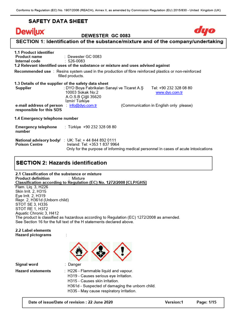 1907/2006 (REACH), Annex II, as amended by Commission Regulation (EU) 2015/830 - United Kingdom (UK)