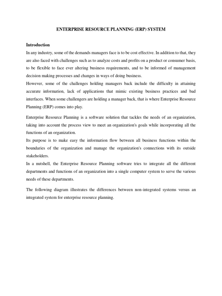 In a nutshell, the Enterprise Resource Planning software tries to integrate all the different