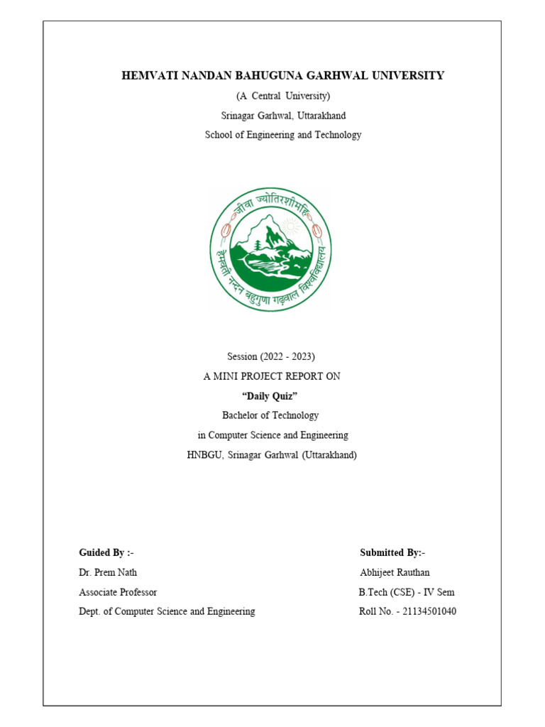 University), Srinagar (Garhwal), Uttarakhand, submit this project report entitled “Daily