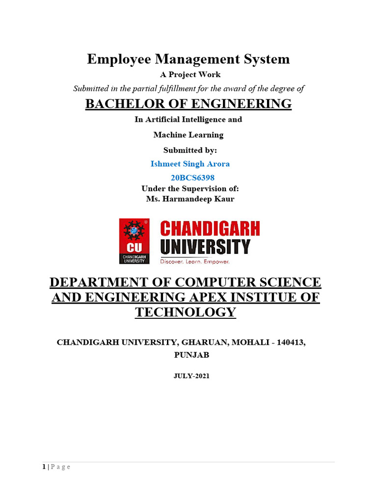 Institute of Technology, Chandigarh University, Punjab, hereby declare that the