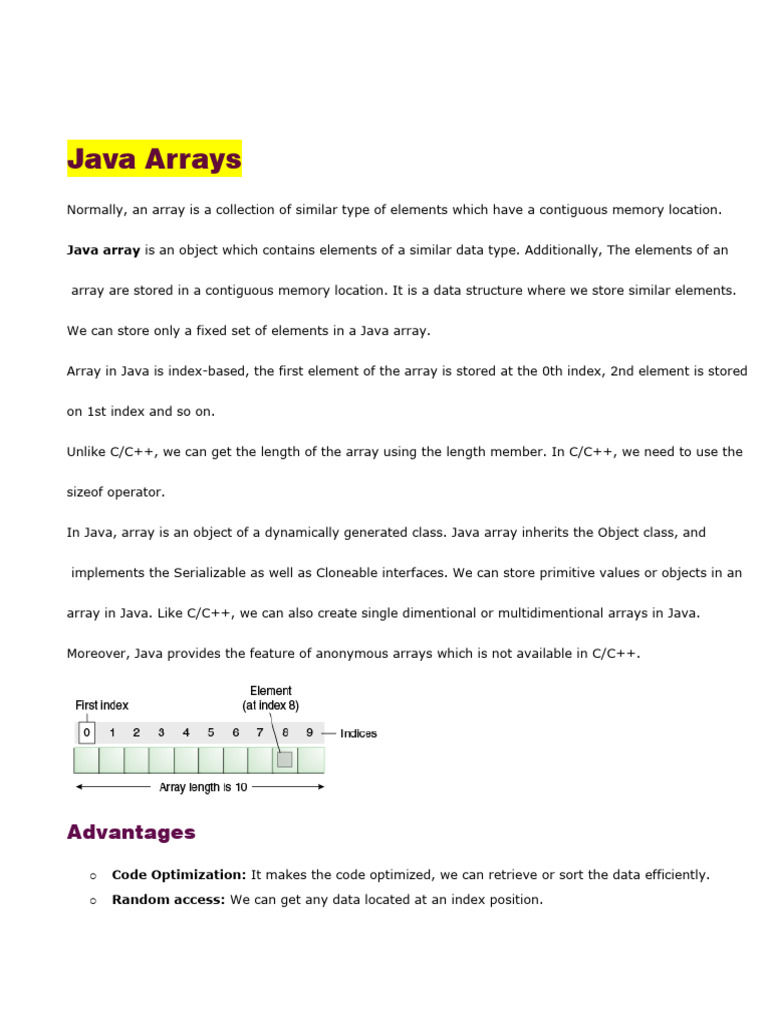 Array in Java is index-based, the first element of the array is stored at the 0th index, 2nd element is stored