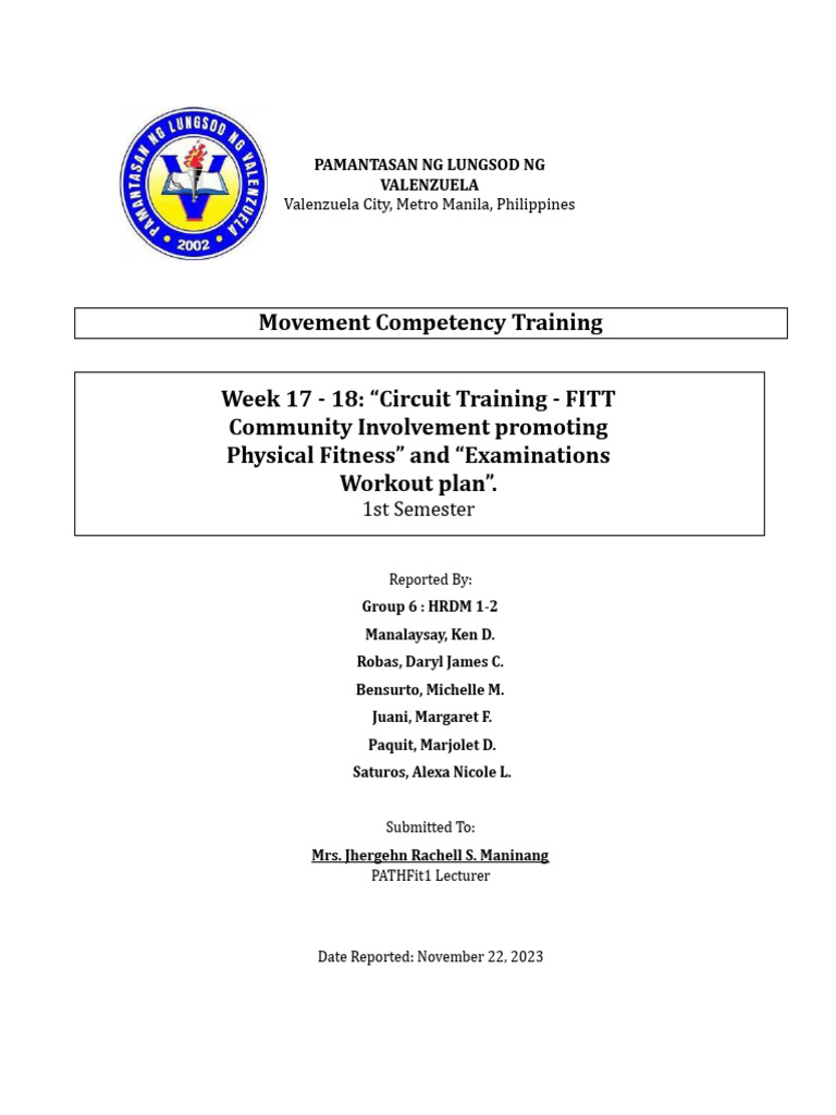 Week 17: Circuit Training - FITT Community Involvement Promoting Physical Fitness