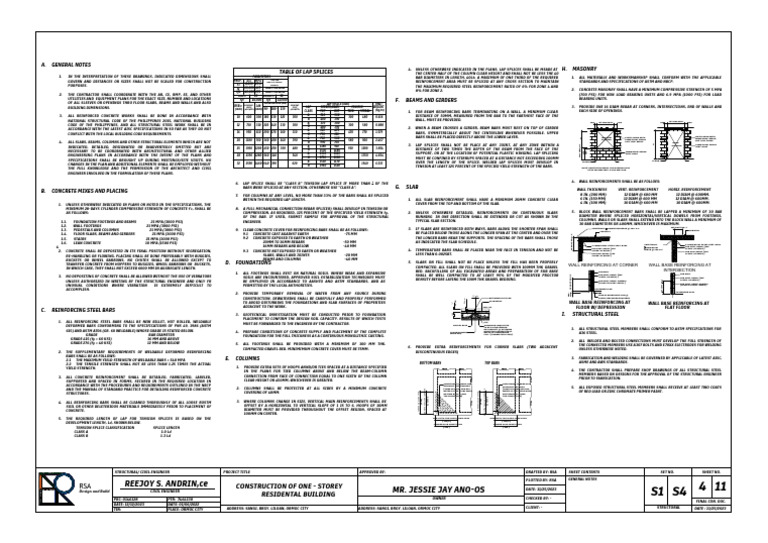 1.1. FOUNDATION FOOTINGS AND BEAMS 21 MPA (3000 PSI) ENGINEER. TYPICAL SLAB SECTION. COLUMNS, WALLS OR SLABS SHALL EXTEND INTO THE BLOCK WALL A MINIMUM OF